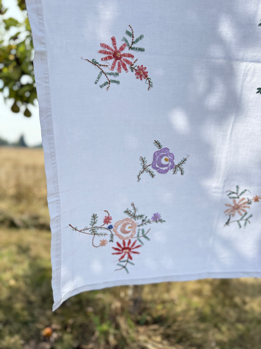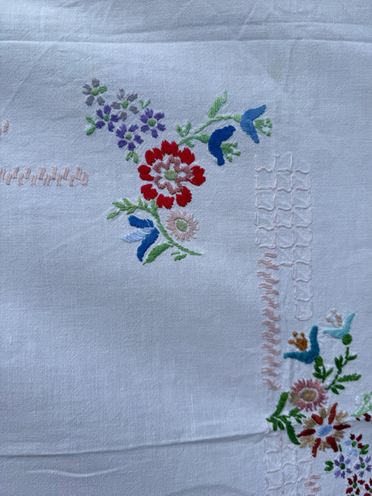 AA. Multi colored embroidered with scallop edges 28" x28"