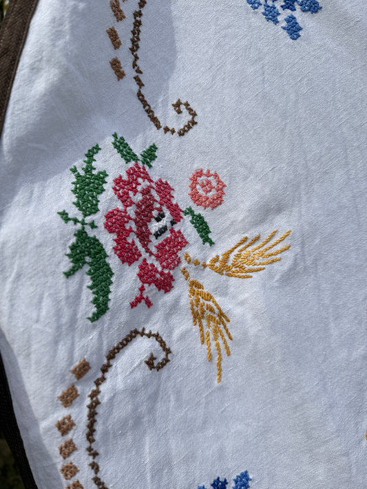 AA. Multi colored embroidered on soft canvas 45" x 52"