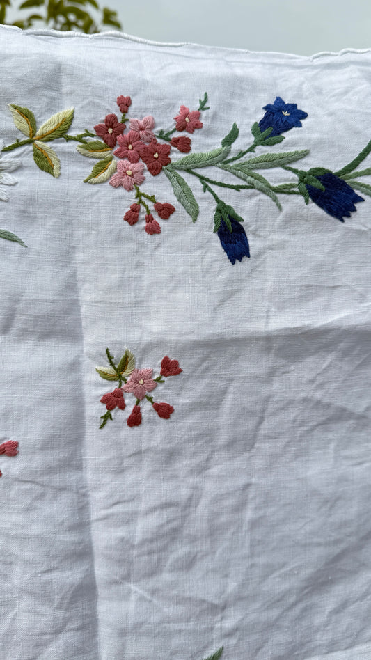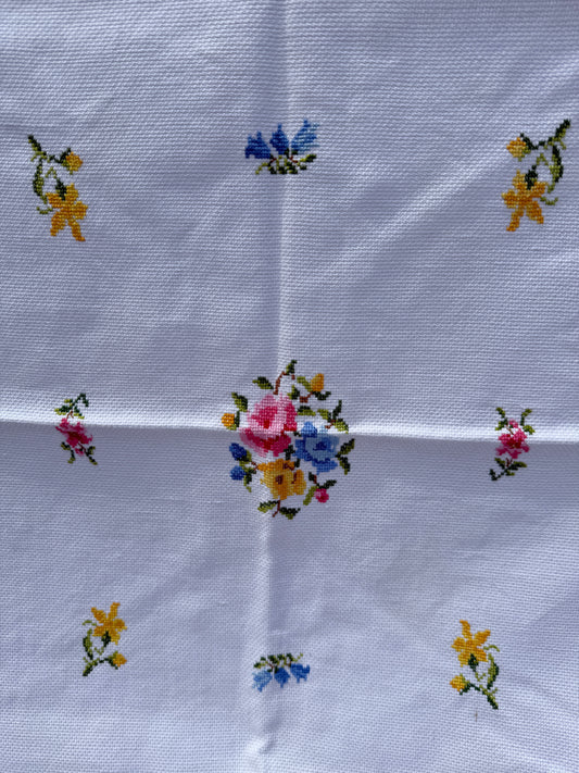 AA. Multi colored embroidered with scallop edges 28" x28"