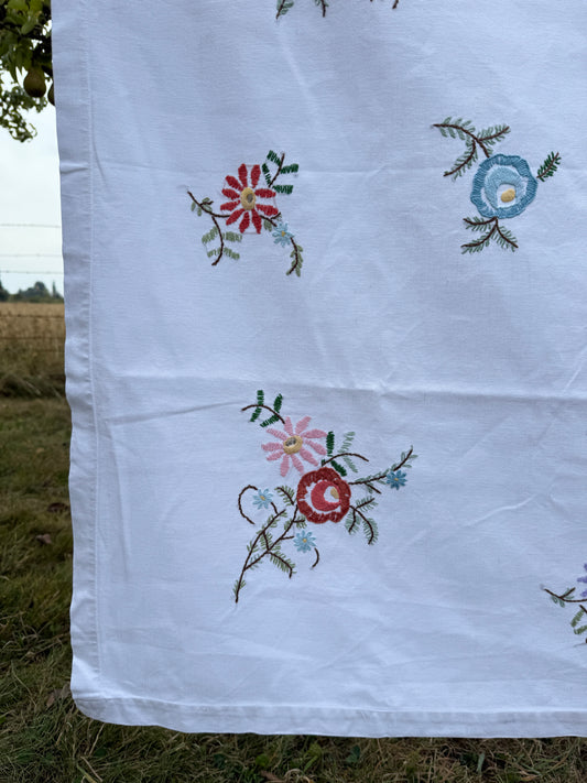 AA. peach and blue daisy embroidered with eyelet 47" x 58"