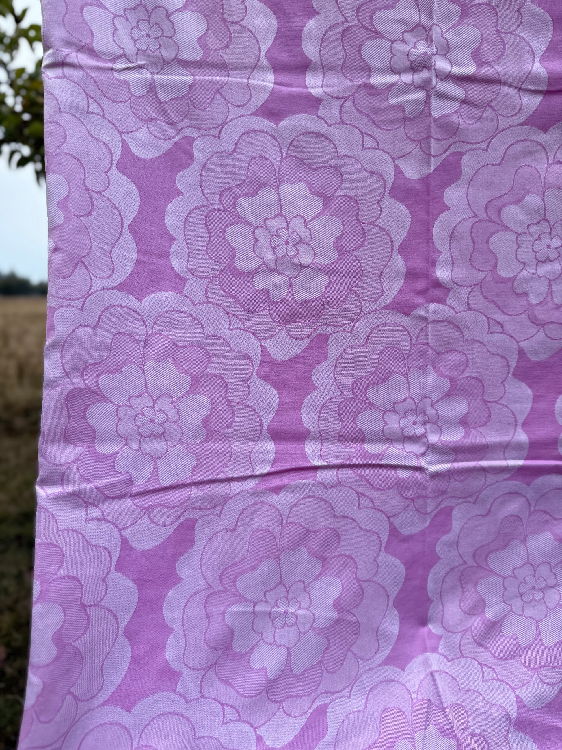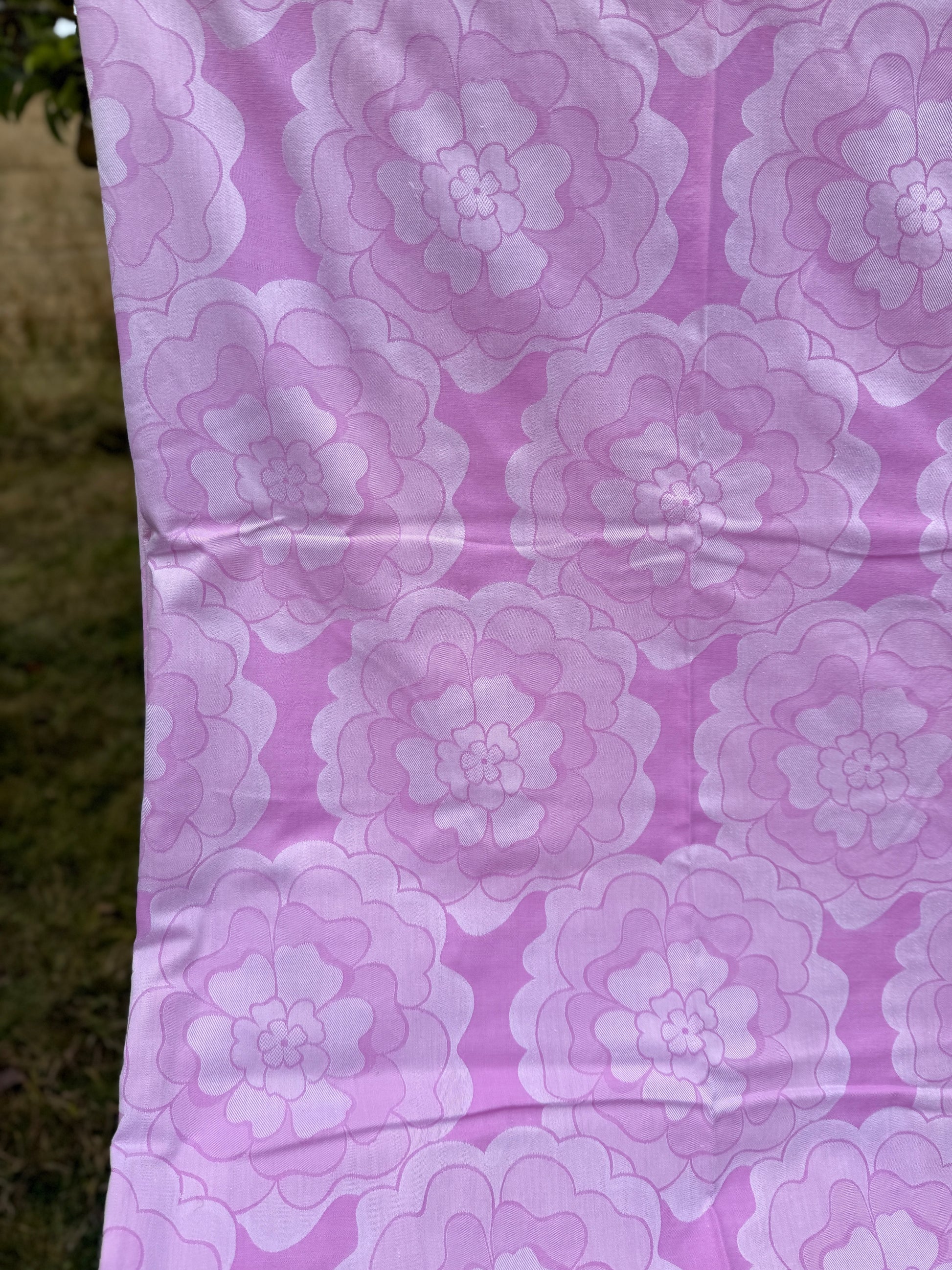 Fun pink floral duvet cover! 52" x 74" on each side so you get double the fabric plus a few buttons from the closure. Soft cotton poplin feeling weight. Would make an adorable dress, blouse, pajamas...