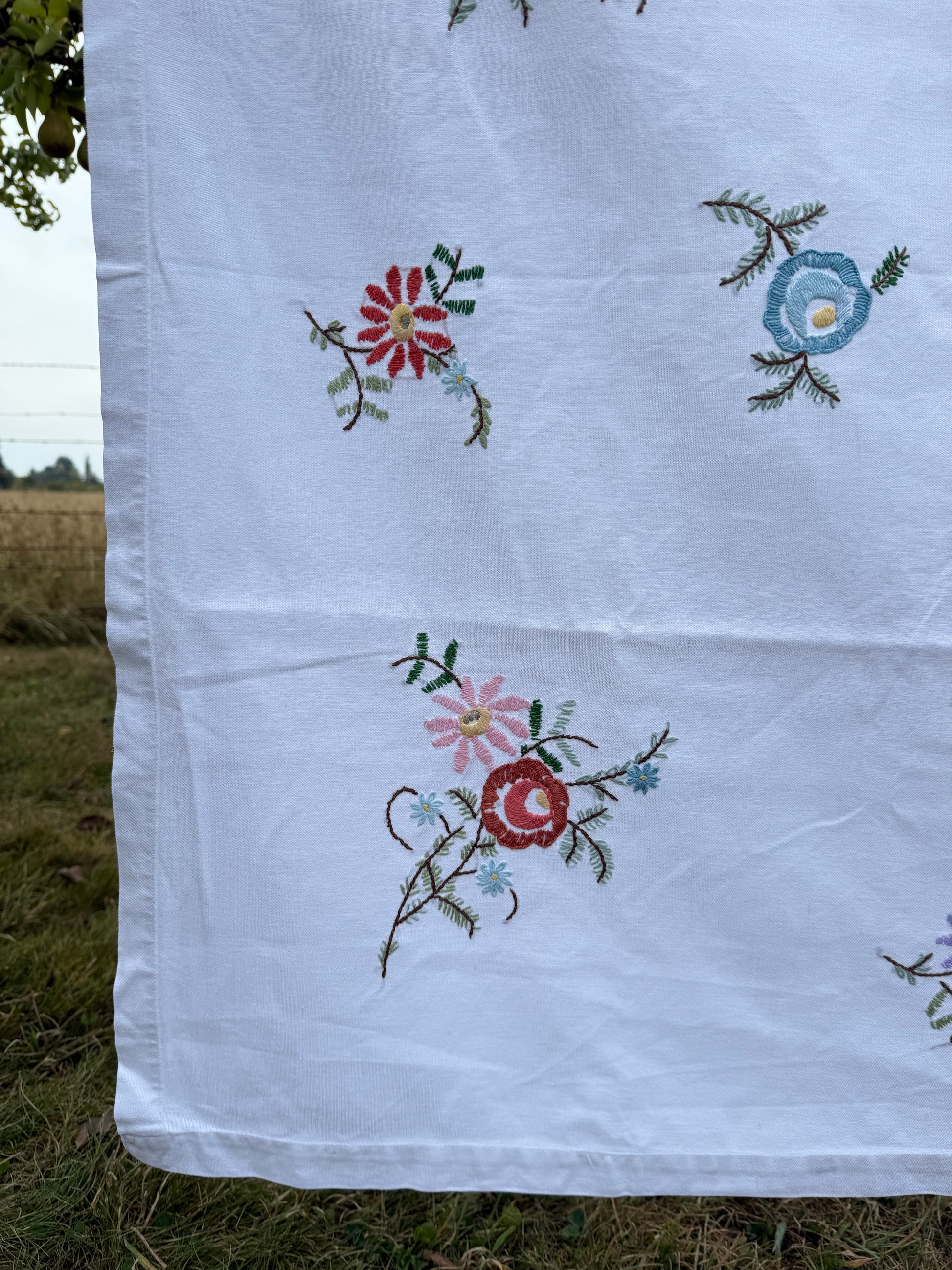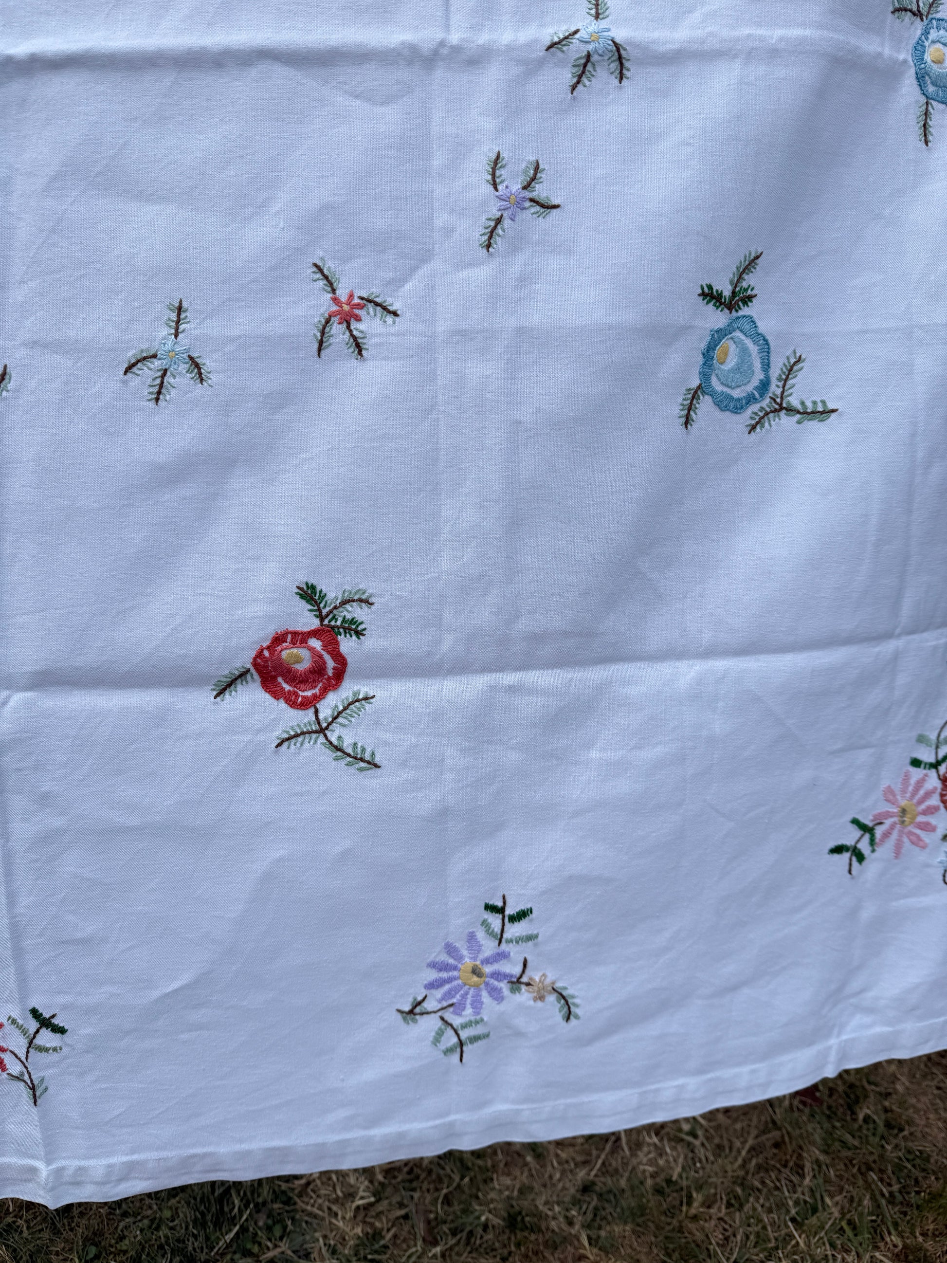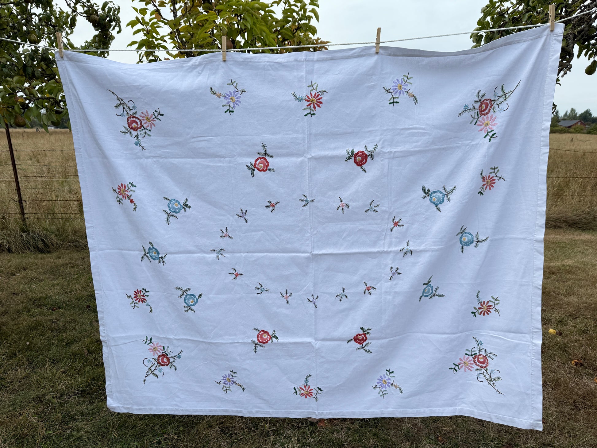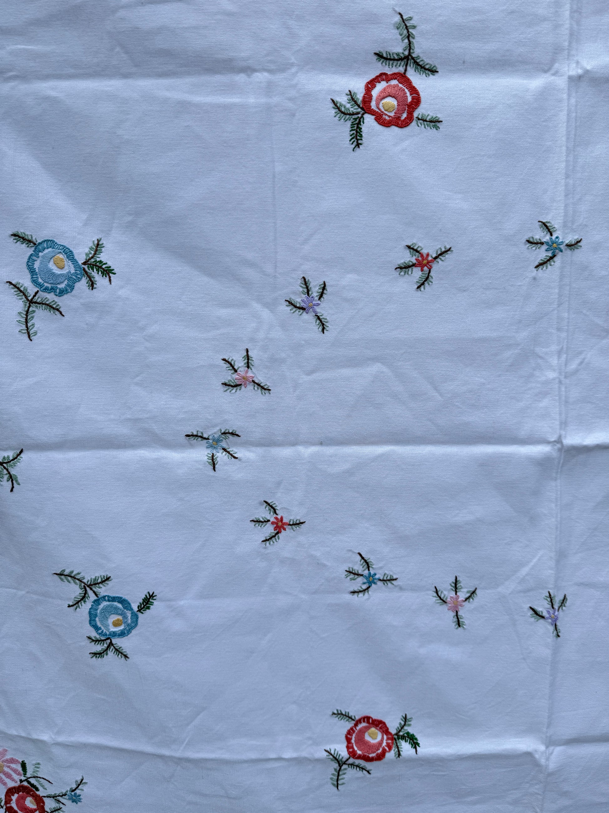 Muted florals on a cotton canvas fabric. 62" x 52" no stains.