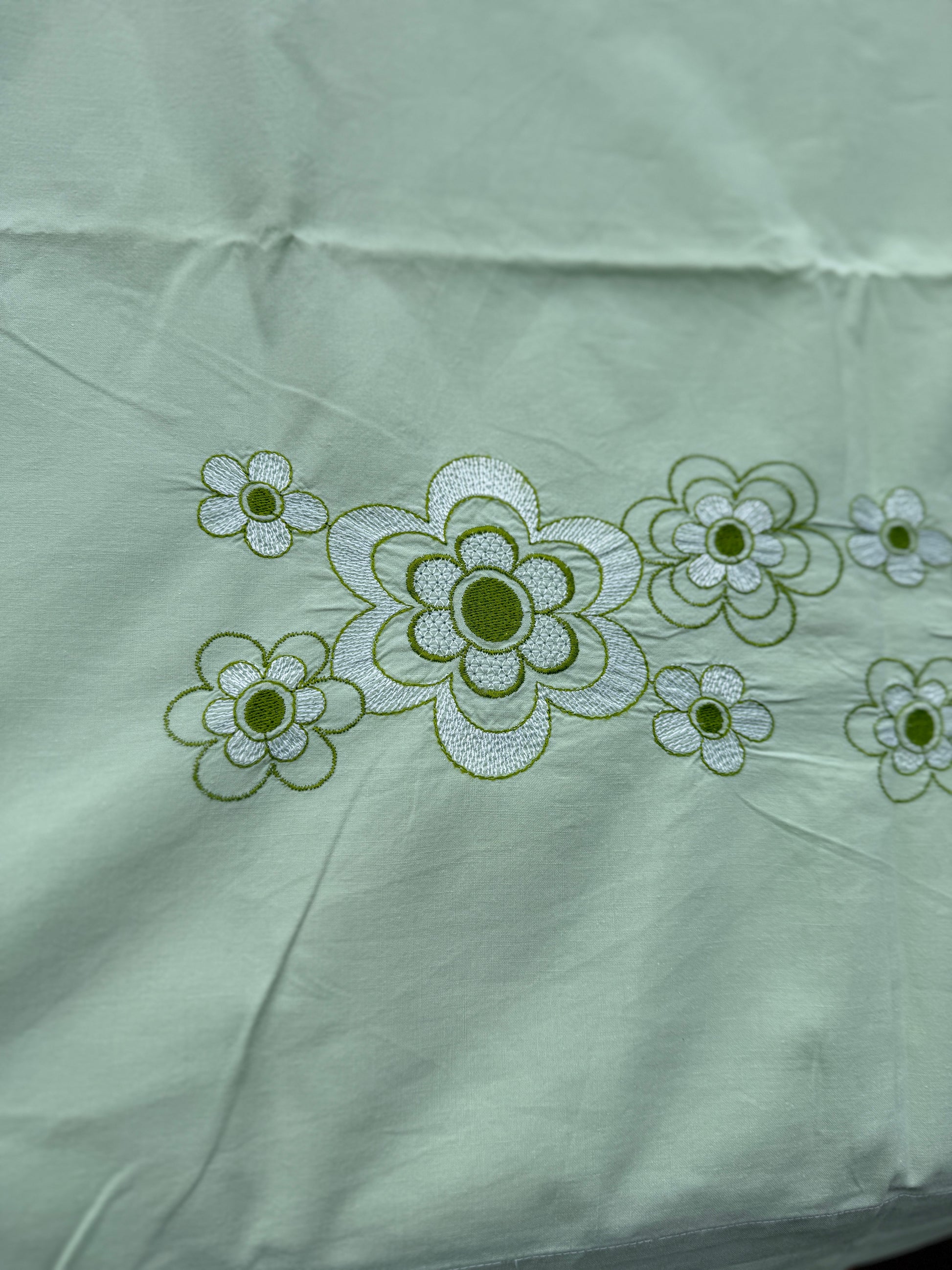 AA. Mint green sheet with daisy machine embroidery 55" x 97"