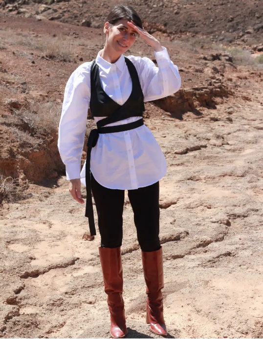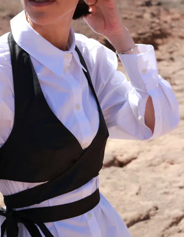 The Wrap Vest is a fun accessory that has a fully-lined, princess seamed bust and long straps that wrap around the high waist and tie at the side. The wrap vest is a great way to add style to a simple outfit: wear it over a t-shirt, puffed sleeve blouse, or printed dress!